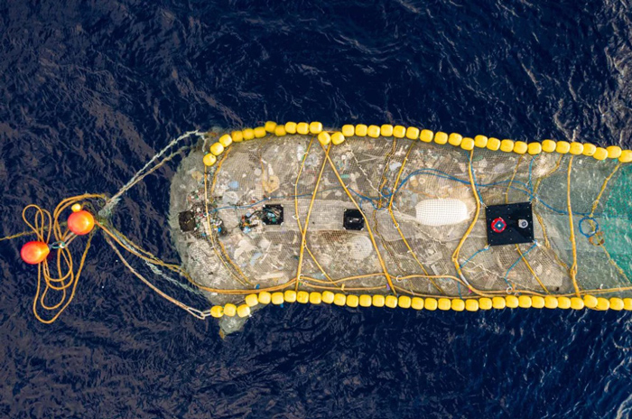 Lixo plástico coletado pelo sistema de redes criado pelo holandês Boyan Slat, da The Ocean Cleanup - G1 Divulgação